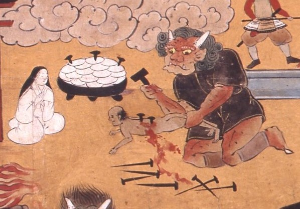 『熊野観心十界図』では、現世から死後の世界、そしてさまざまな地獄の責め苦が描かれていますが、一方で“救いのシーン”も多数見ることができます。今回はその中から3つ紹介したいと思います。